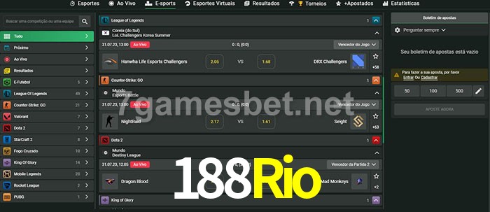 O 188Rio oferece uma grande seleção de opções de apostas em e-sports com probabilidades competitivas